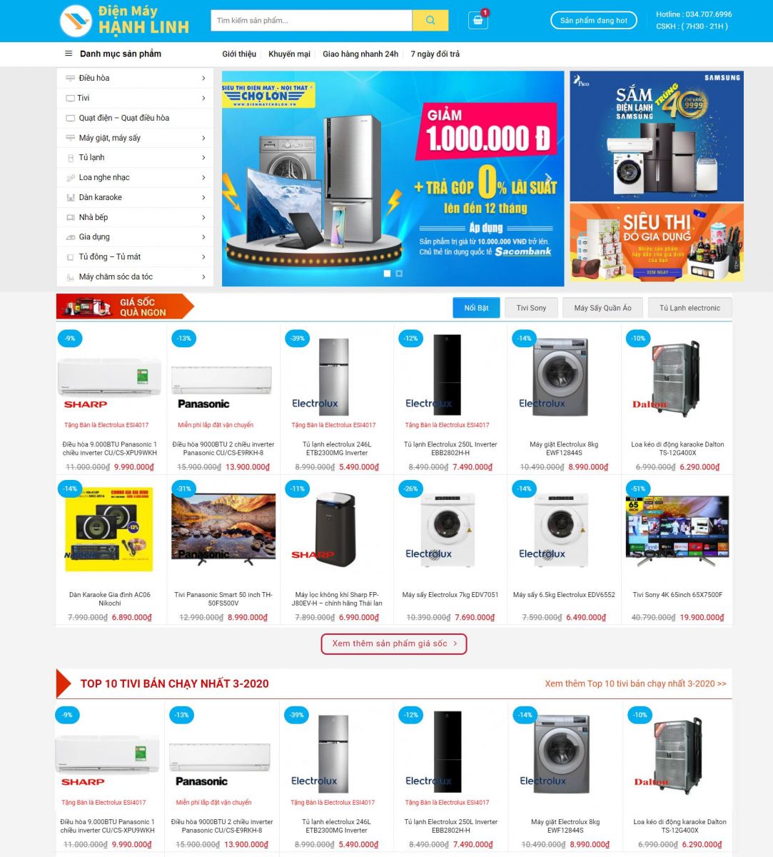 • Danh mục sản phẩm đa dạng: Cho phép phân loại logic các mặt hàng từ điện máy, gia dụng đến thực phẩm bách hóa để khách hàng dễ dàng lựa chọn.