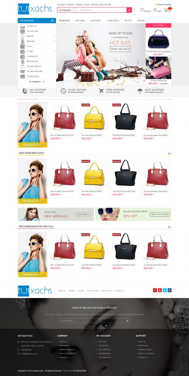 Thiết Kế Website Bán Túi Xách Online |Trần Gia Digital - 0961644448